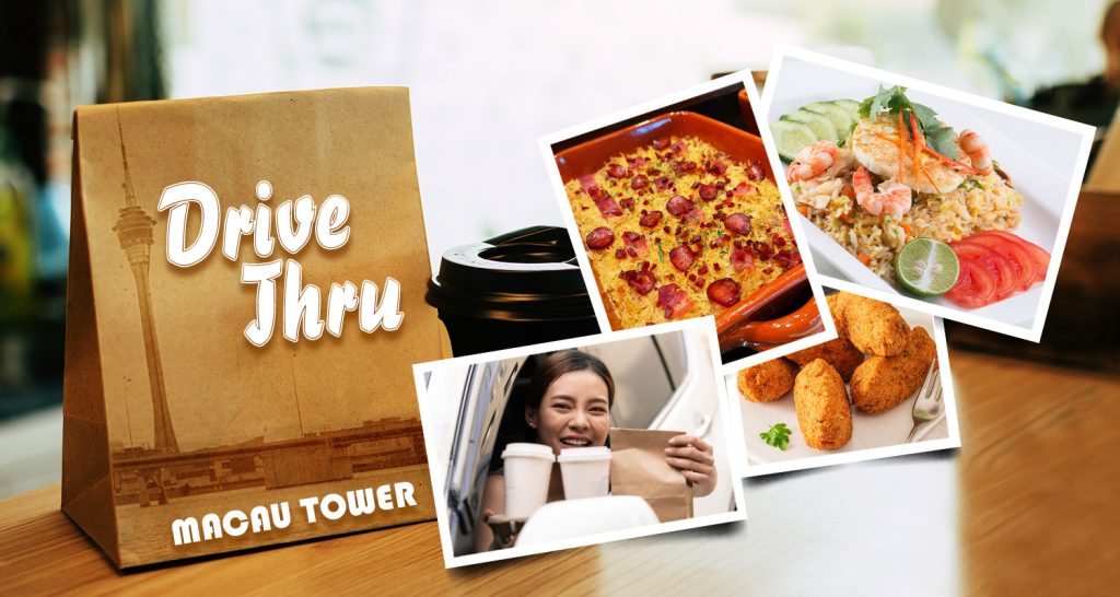 Drive Thru Service offering a special selection of dishes by Café on 4, Lua Azul, Tromba Rija and Patisserie so you can conveniently pick up your order every day, between 6pm and 7pm, at Macau Tower driveway.