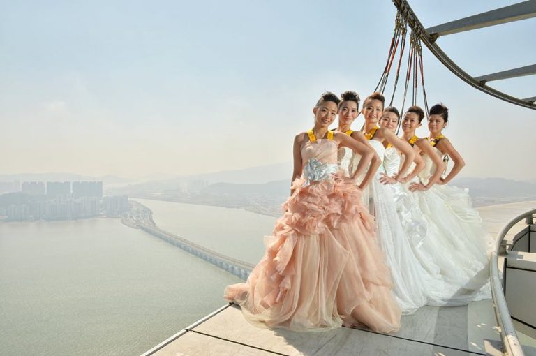 You can’t beat Macau Tower if you’ve got the nerve. Imagine shots of the wedding party posing in their wedding finery 233 metres in the air on Skywalk, a 1.8-metre wide walkway with no handrail.